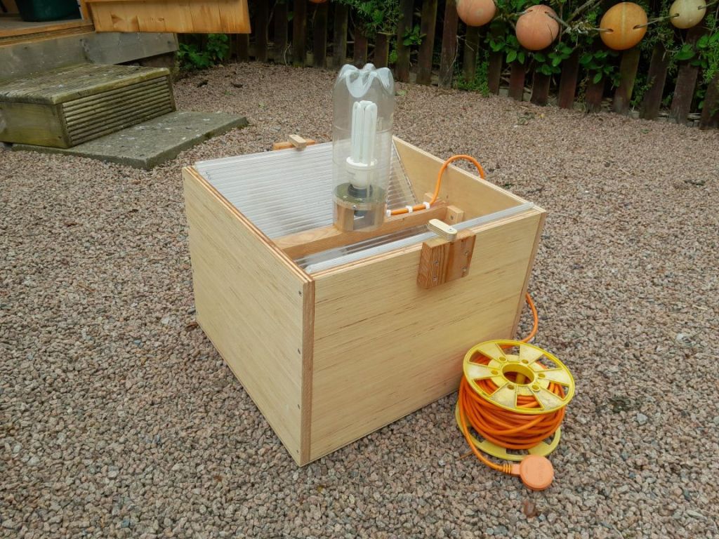 One of the easiest ways for us to come into contact with night-flying moths is by the use of a light trap. This is a simple device comprising a light source mounted on top of a catching-box with a funnelled entrance, rather like a lobster-creel. The moths are attracted by the light, bump into the plastic cover over the lamp, and drop into the box through the funnel. The catching-box is filled with old cardboard egg-boxes, where the moths can safely go to roost until the trap is opened and inspected the following morning. Best of all, the trap does its work while we’re safely tucked up in our beds, meaning we don’t have to stay up all night to see the moths. What’s not to like?