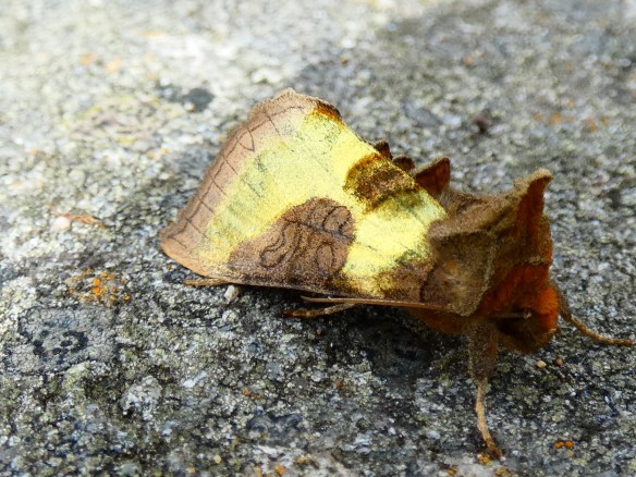 A personal favourite is the Burnished Brass moth. Both moths and butterflies belong to an order called ‘lepidoptera’, which means ‘scaly wings’. Ever tried to handle a moth, maybe to evict it from the house? You probably noticed that there was moth dust everywhere. This would have been scales, shed from the wings and it is these scales which give moths – and butterflies – all the colours and patterns on their wings. Depending on how the light catches them, they can even look like polished metal – pretty impressive!