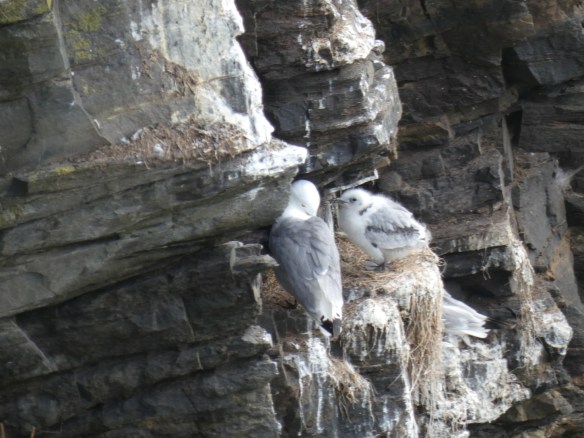 The cliff-nesting seabirds are usually later in the year than the ground-nesters to fledge. Guillemots seem to have had a really poor year and we know the numbers of Kittiwakes are down too (both probably as a result of bird ‘flu last year). But, on the plus side, good numbers of those Kittiwakes that have actually nested this year seem to have half- to two-thirds-grown young.